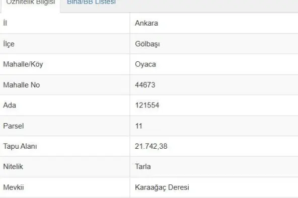 GÖLBAŞI OYACA'DA 1000m2 HİSSELİ ARAZİ