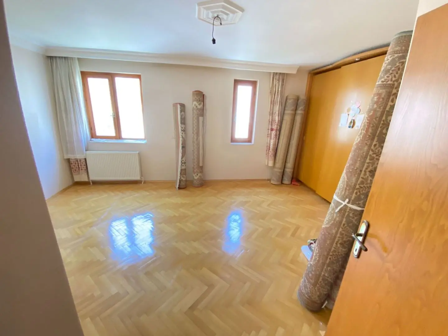 Yer kaplamaları masif ahşap parke, pencereler ısı camlı masif ahşap doğrama, kapılar masif ahşap kasa özel mobilya imalattır.