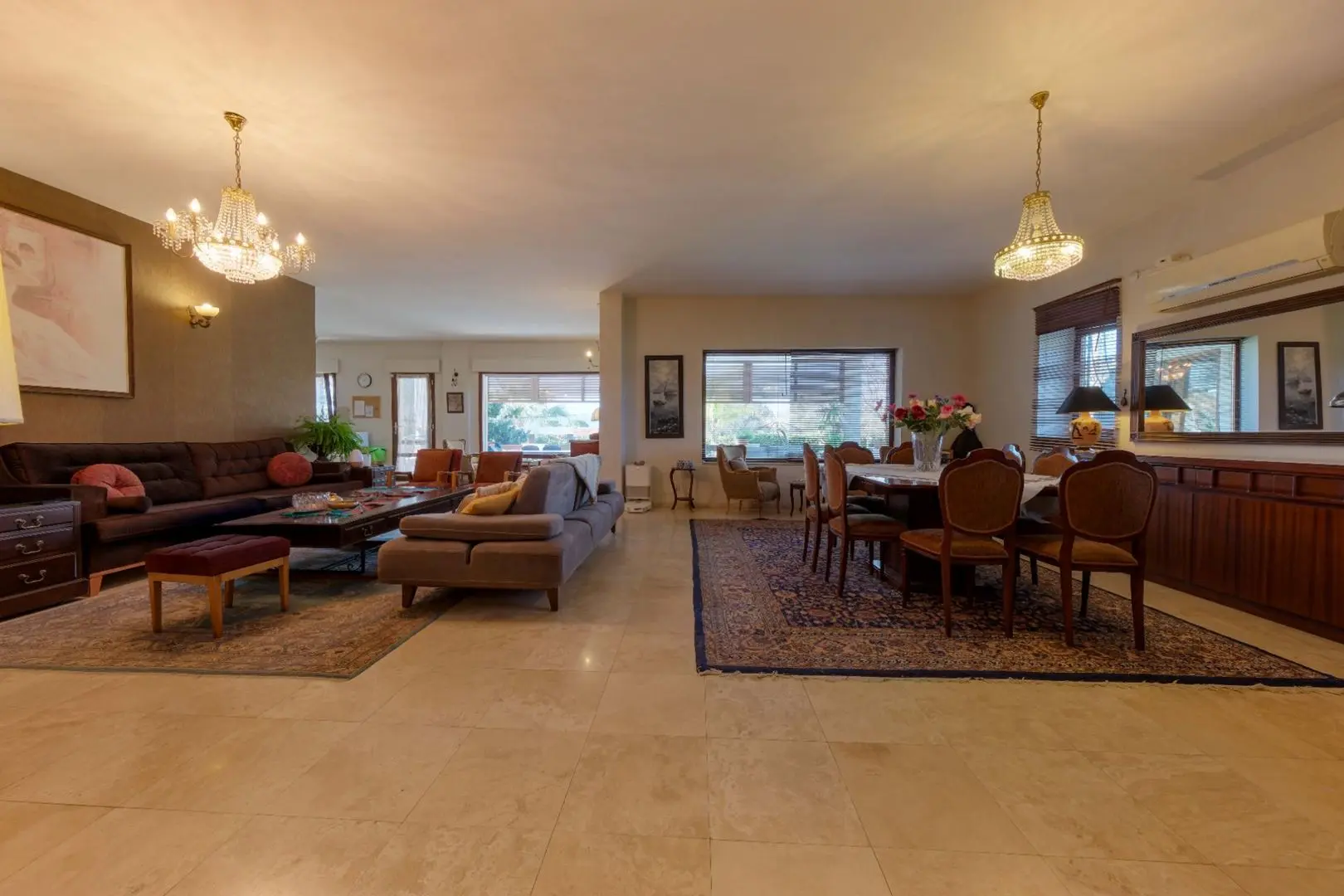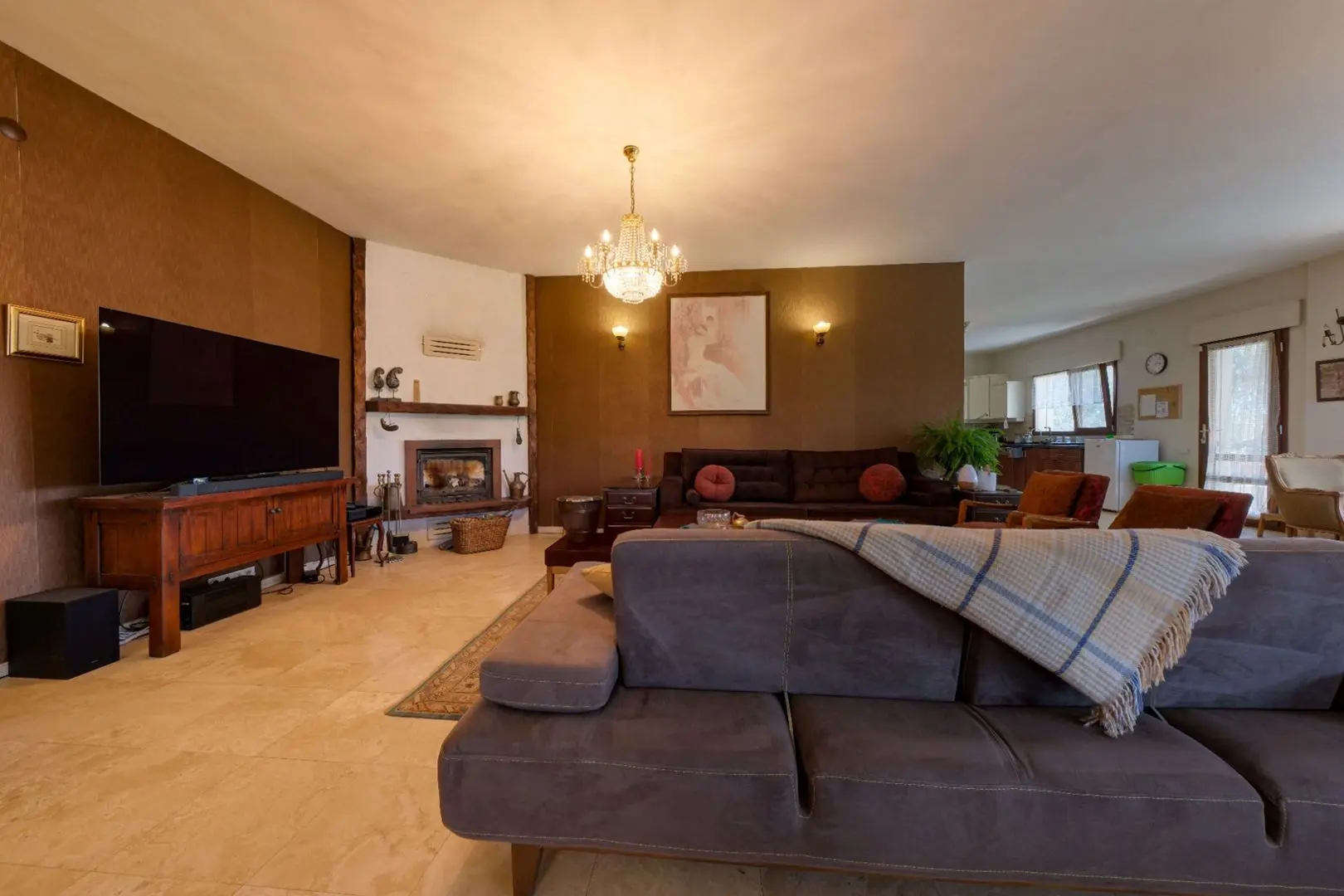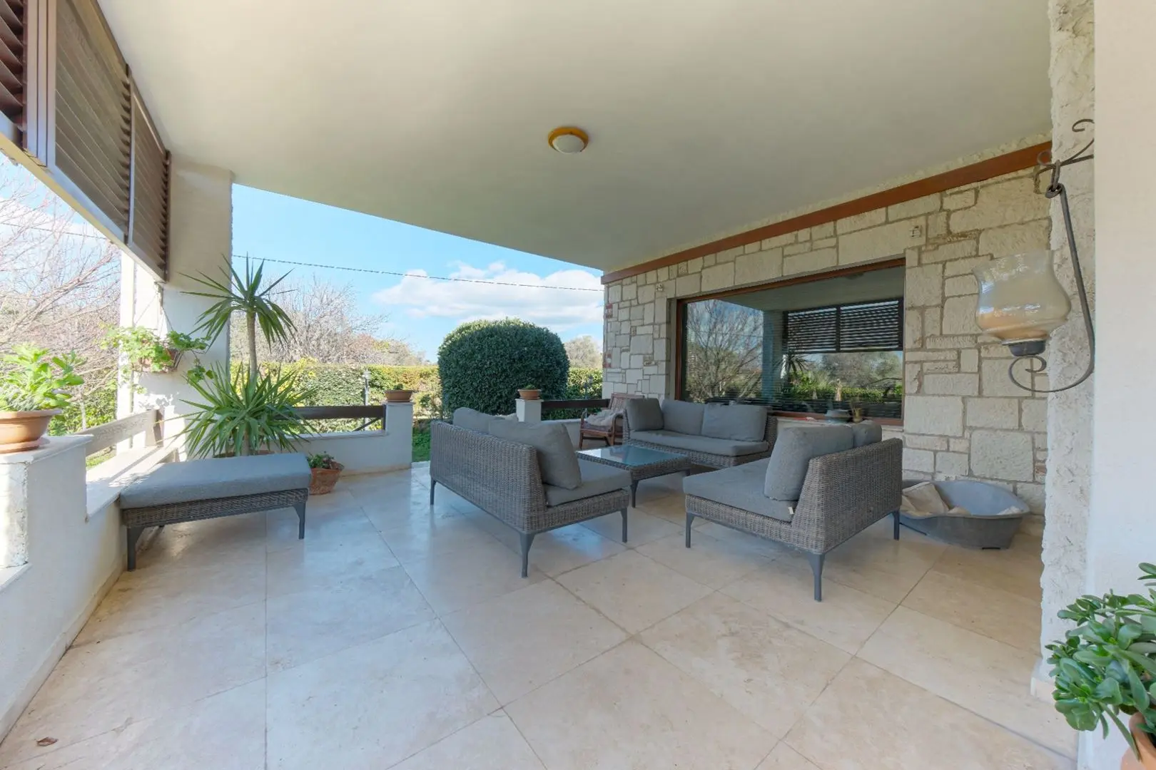 • Ana kat, balkonlar ve teras traverten doğal taş kaplama